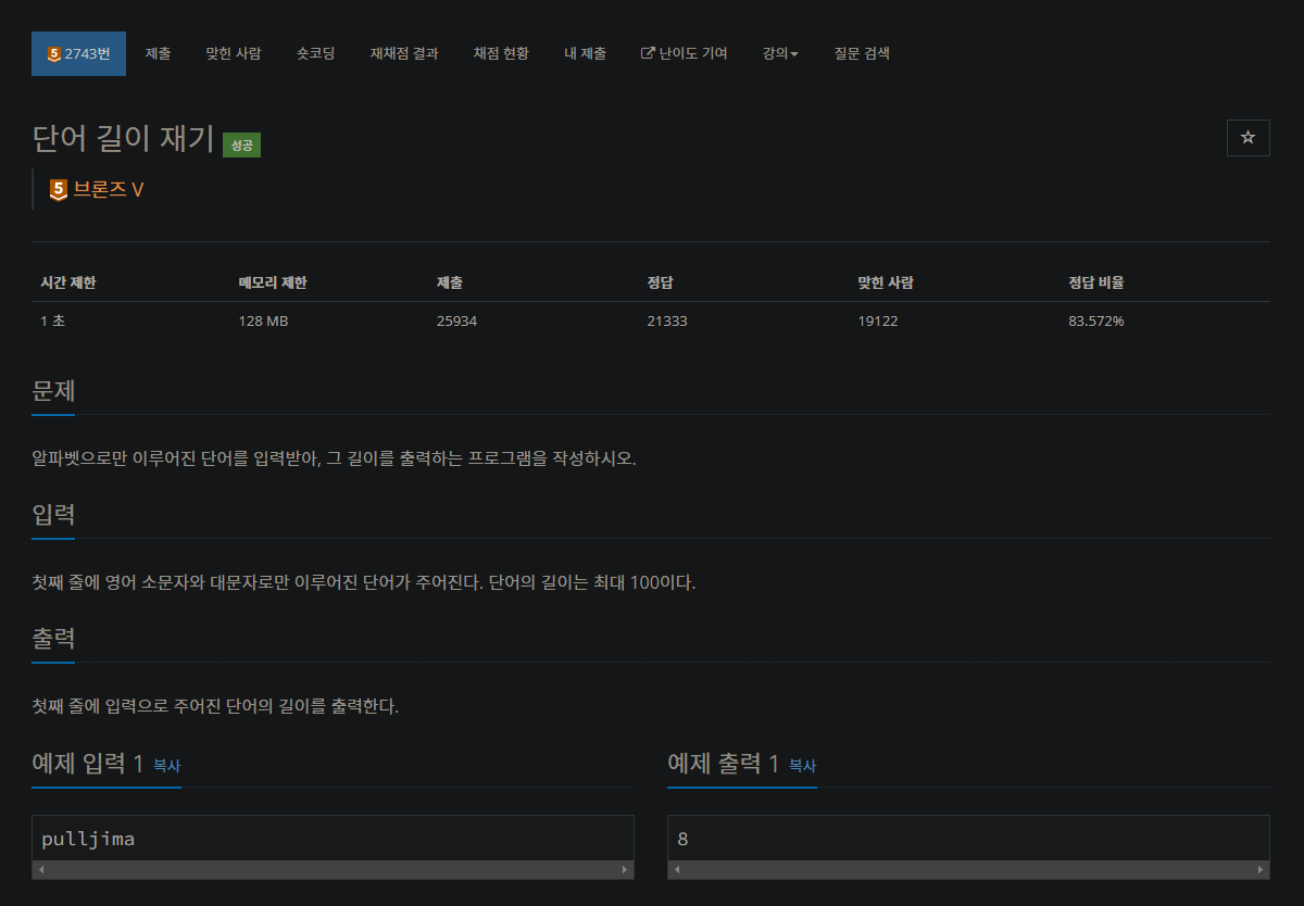 2743번: 단어 길이 재기