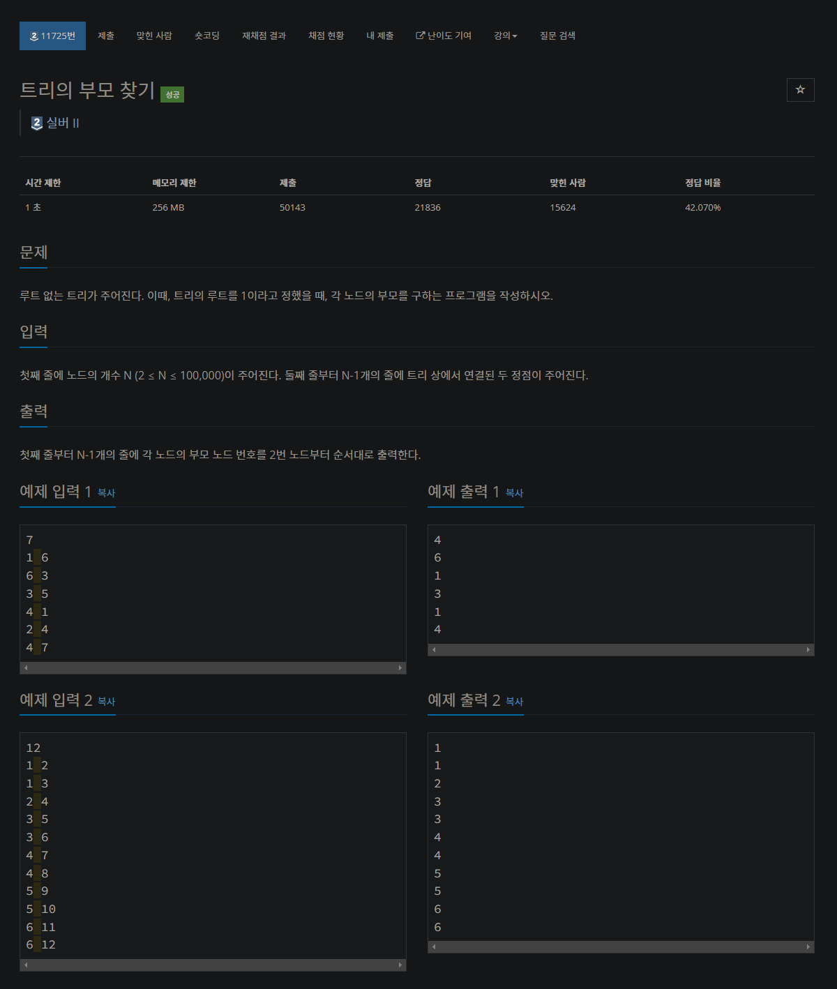 https://www.acmicpc.net/problem/11725
