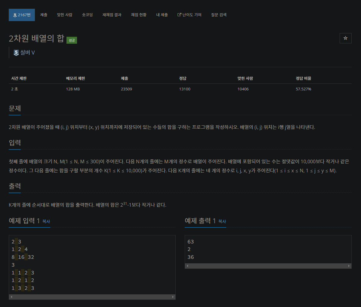 PyPy3 로 제출한 코드는 시작과 끝을 알리는 좌표(index) 구간에서 모든 value 들을 누적 합하여 제출한다.