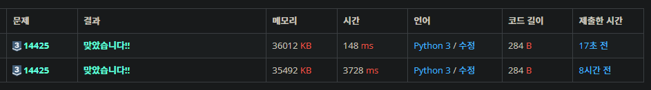 다시 수정하여 정답을 제출. set() 사용 연습을 하자.