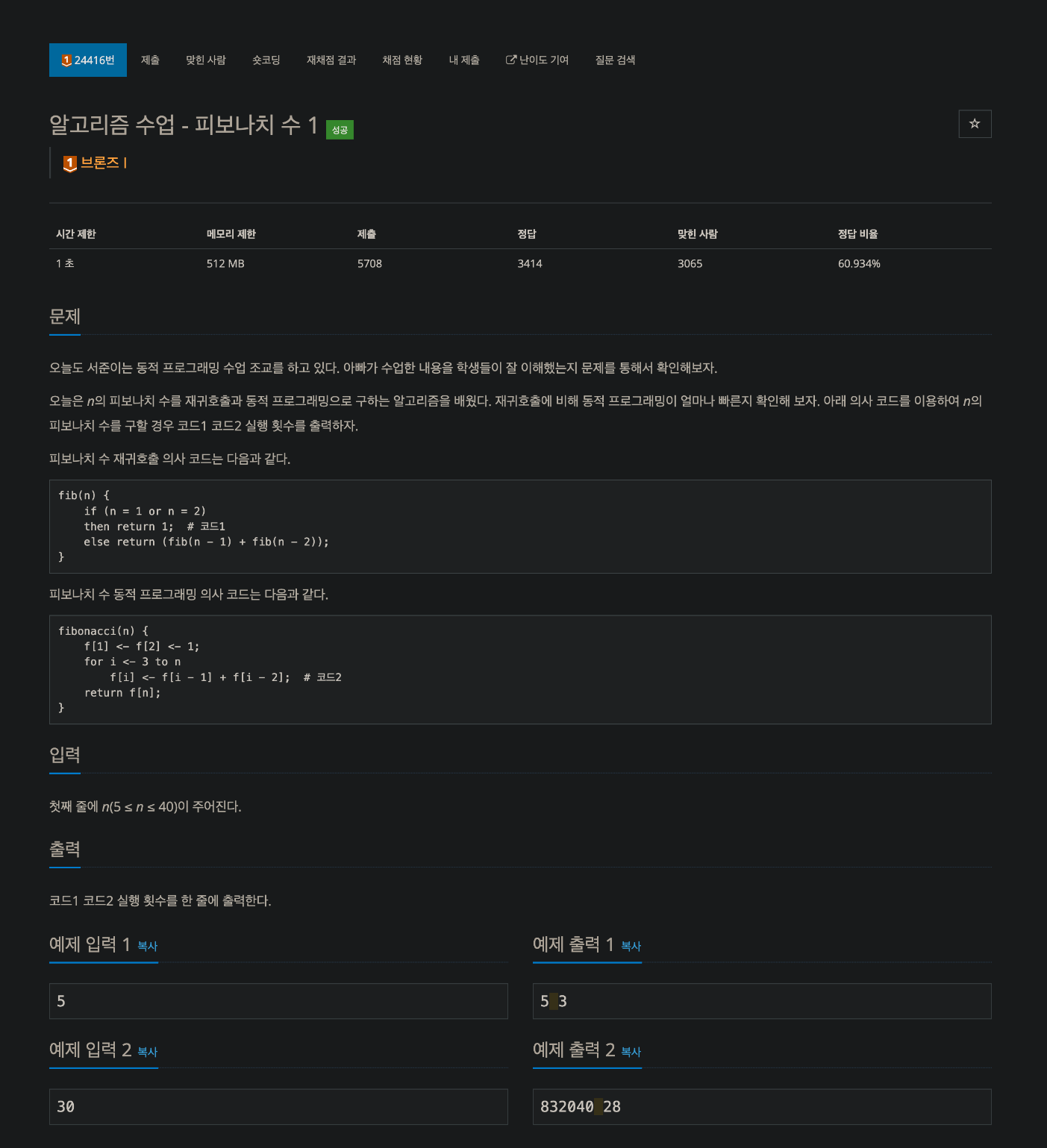 24416번: 알고리즘 수업 - 피보나치 수 1