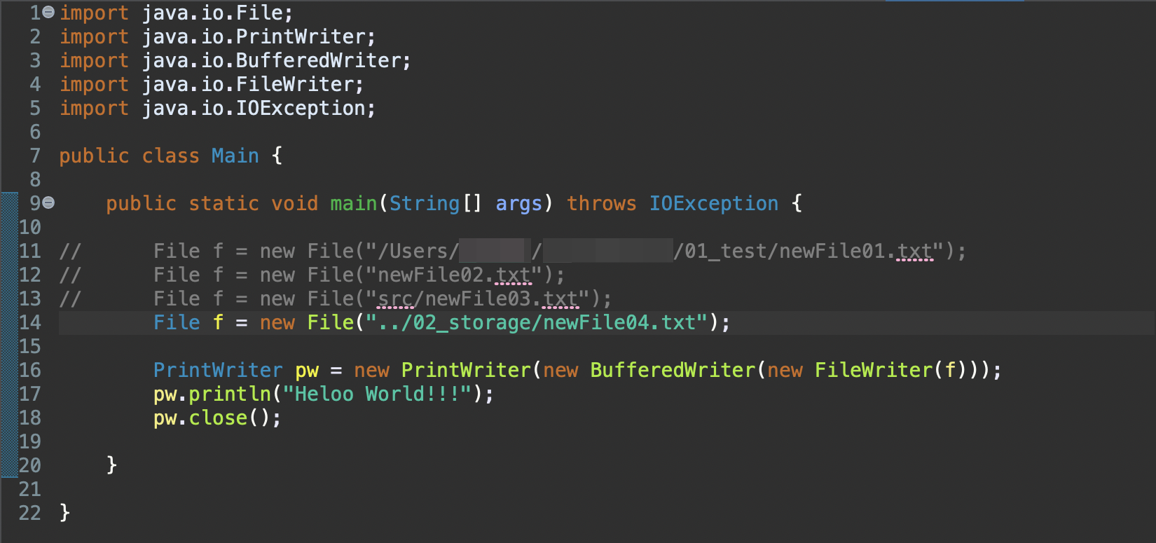 위의 예제는 프로젝트 폴더를 한 단계 올라가 02_storage 폴더에 접근하여 "newFile04.txt" 파일을 작성하였다.