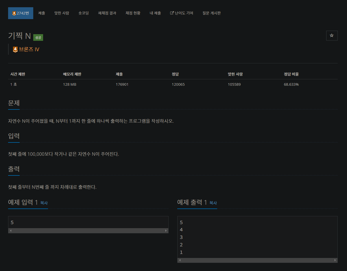 자바 백준 2742번