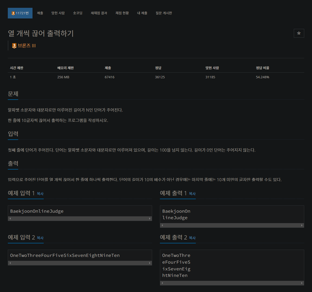 자바 백준 11721번