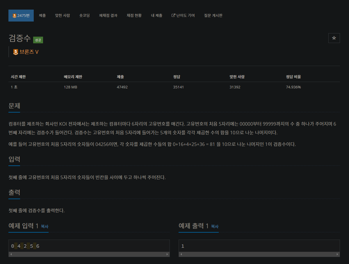 https://www.acmicpc.net/problem/2475
