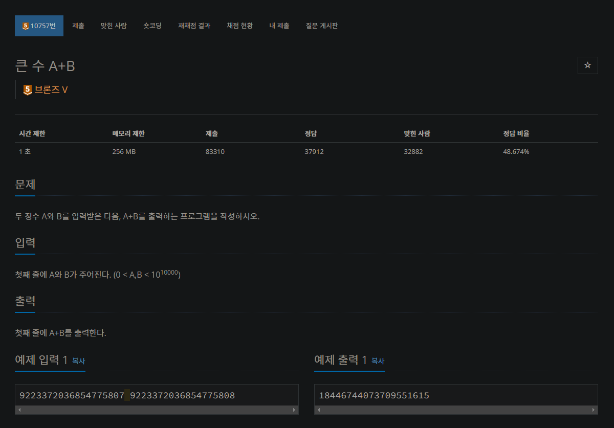 두 정수 A와 B를 입력받은 다음, A+B를 출력하는 프로그램을 작성하시오.