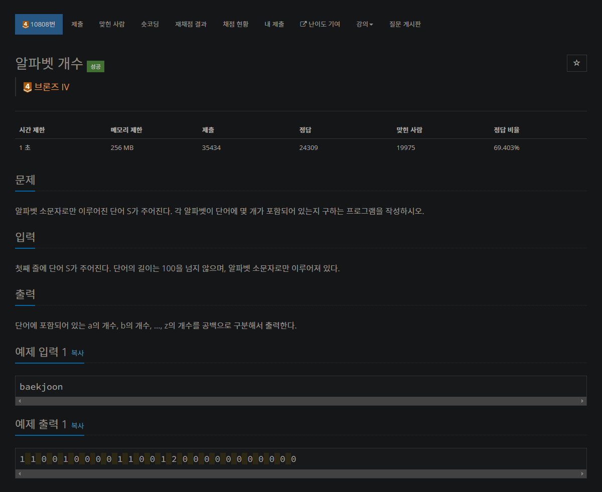 10808번: 알파벳 개수