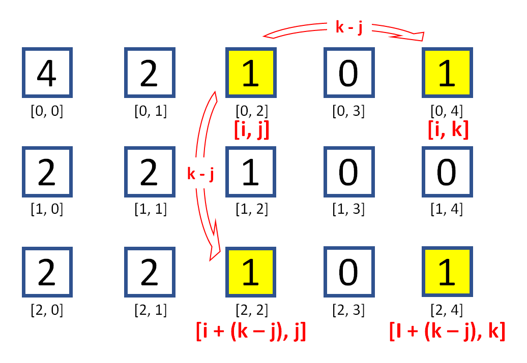 if i + (k - j) <= n - 1 and vertex == rectangle_ls[i + (k - j)][j]: # 세로 방향 index 를 벗어나지 않는 범위에서 기준 숫자와 같은 좌표가 있을때.