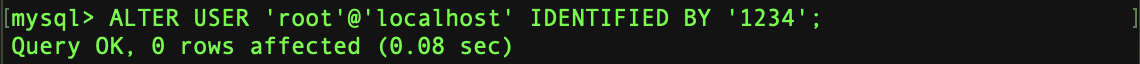 ALTER USER 'root'@'localhost' IDENTIFIED BY '1234';