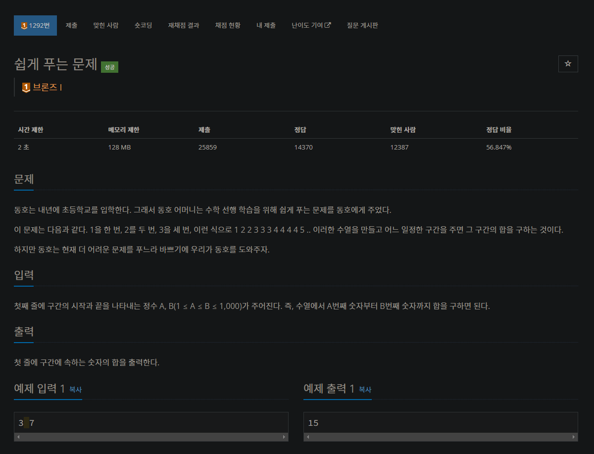 1292번: 쉽게 푸는 문제