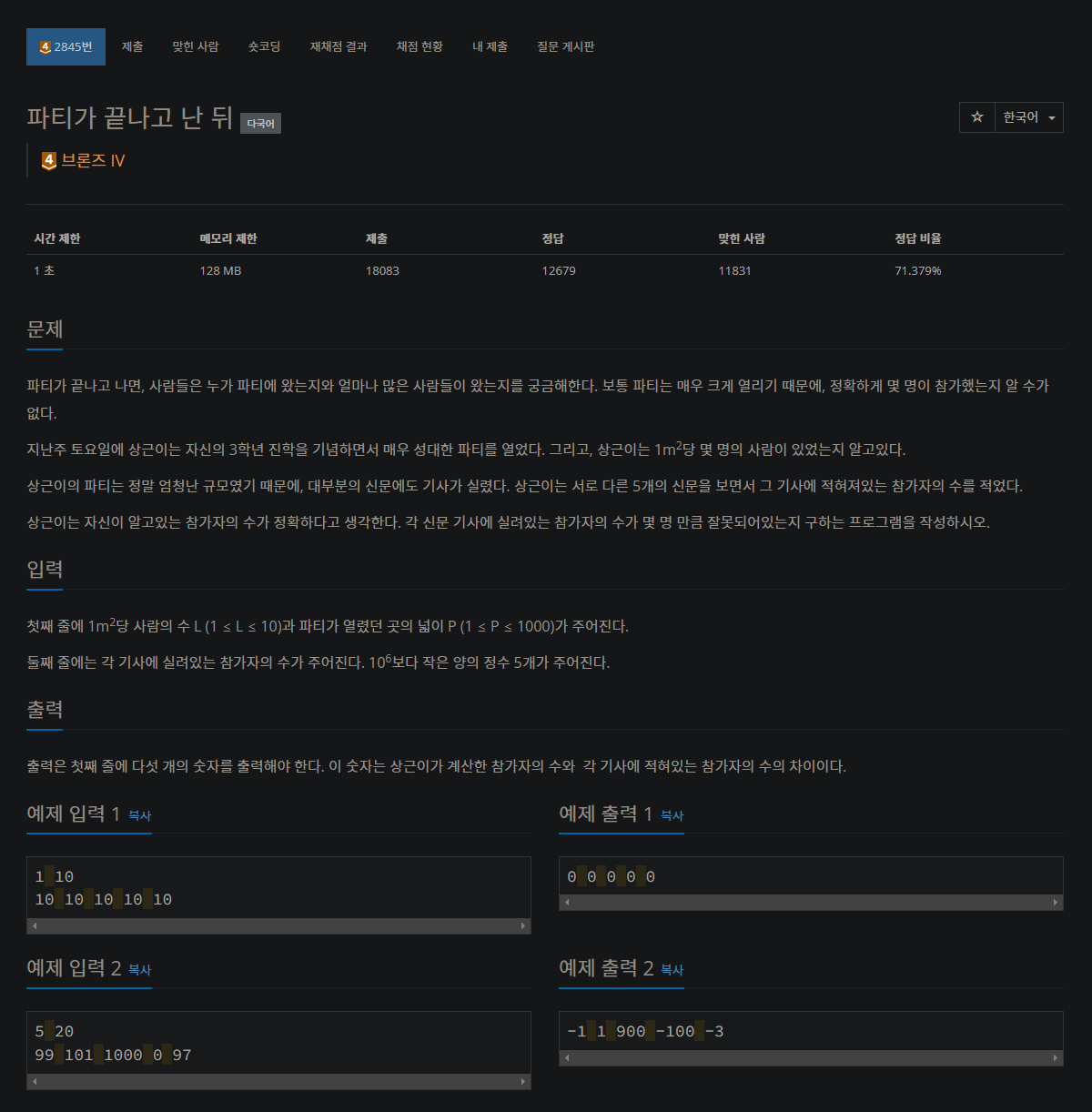 2845번: 파티가 끝나고 난 뒤