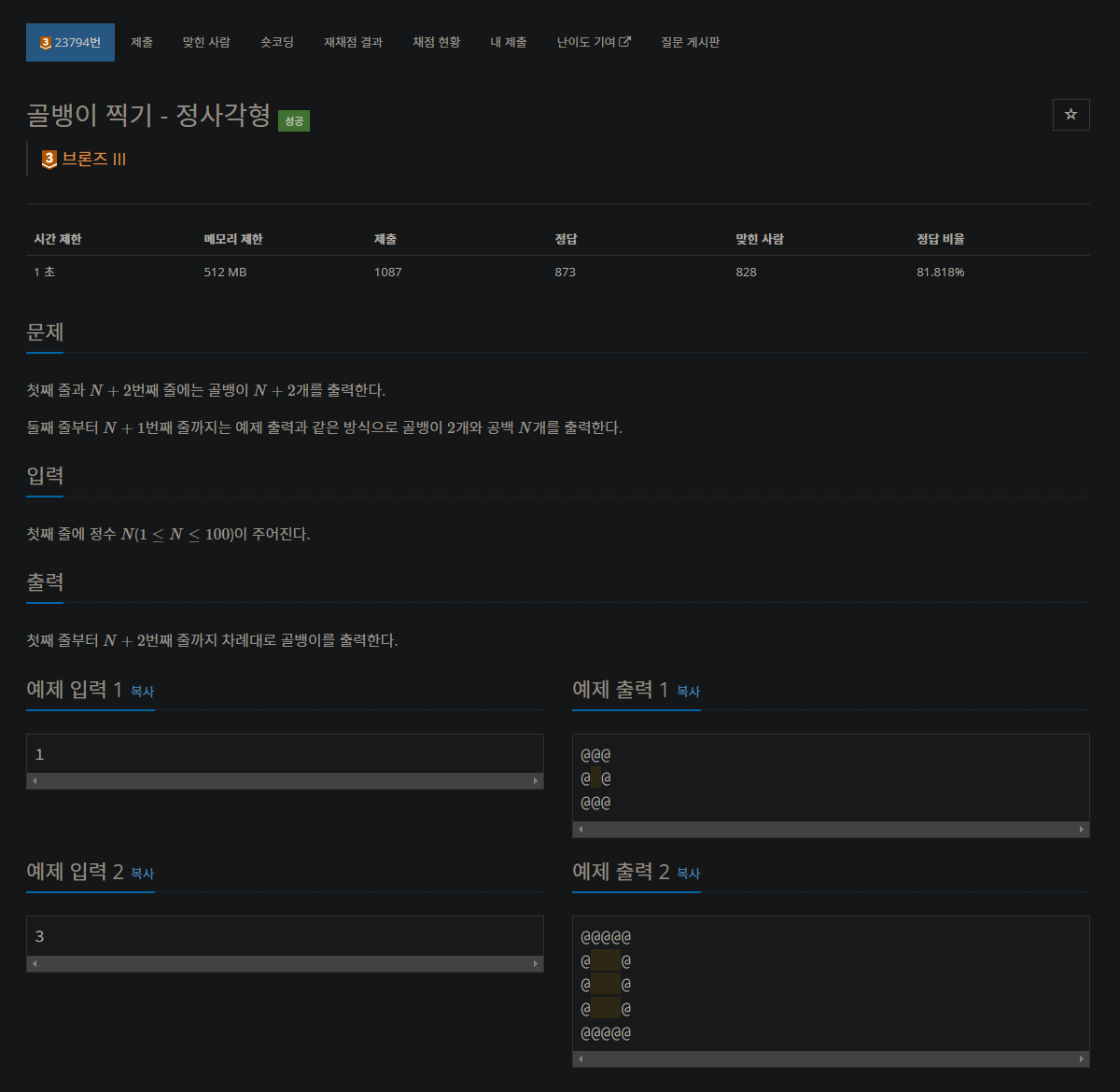 23794번: 골뱅이 찍기 - 정사각형