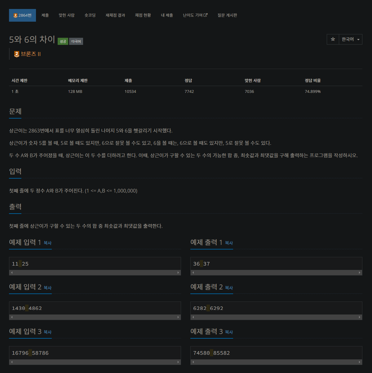 2864번: 5와 6의 차이