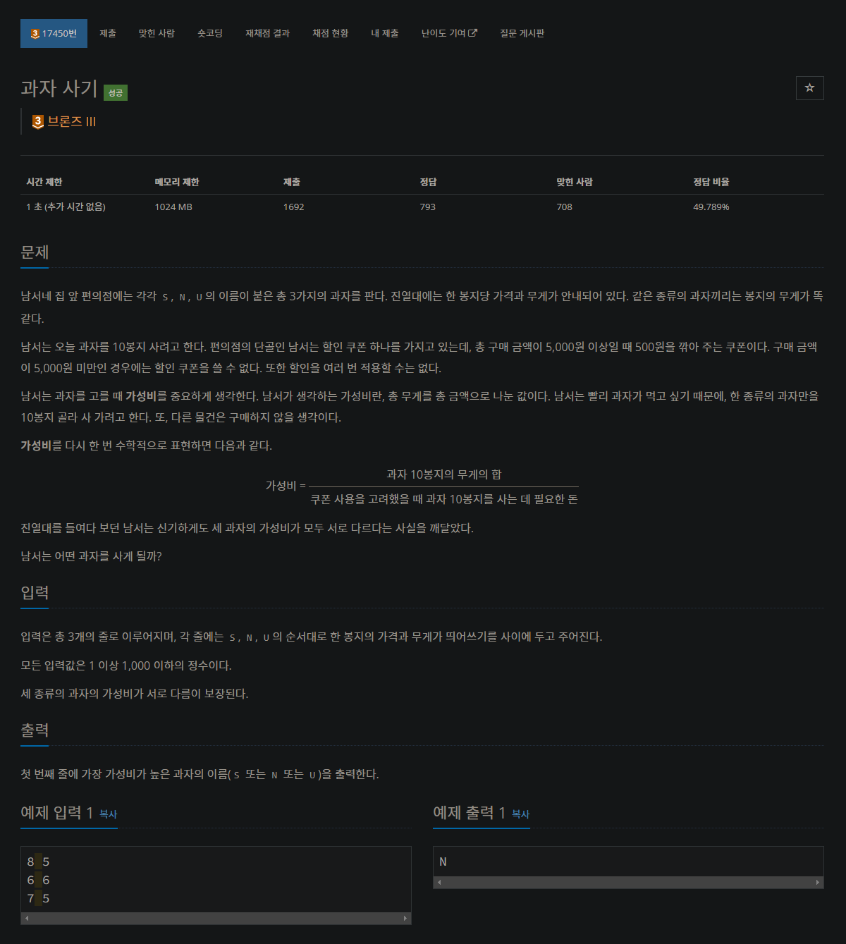 17450번: 과자 사기