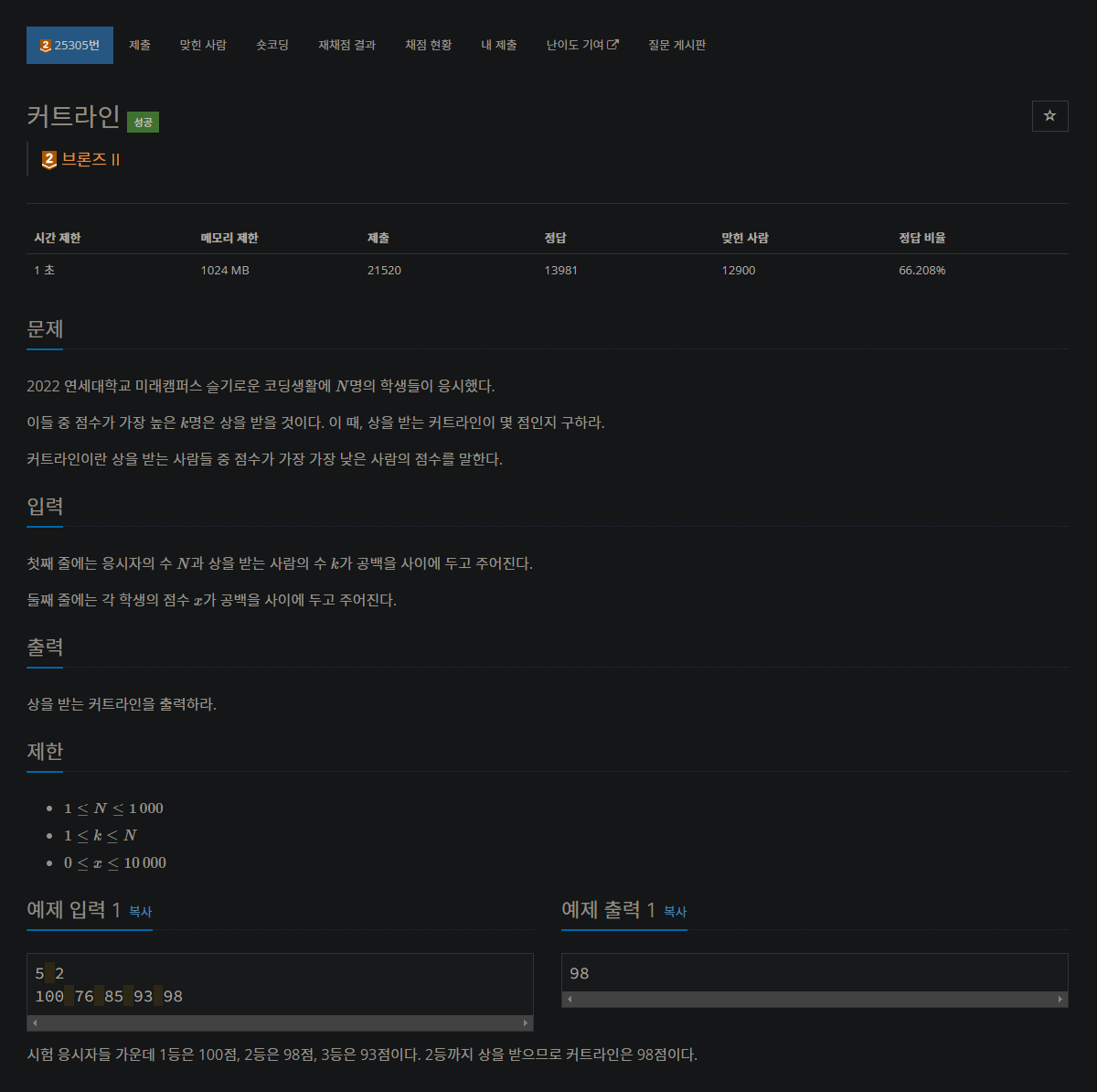 https://www.acmicpc.net/problem/25305