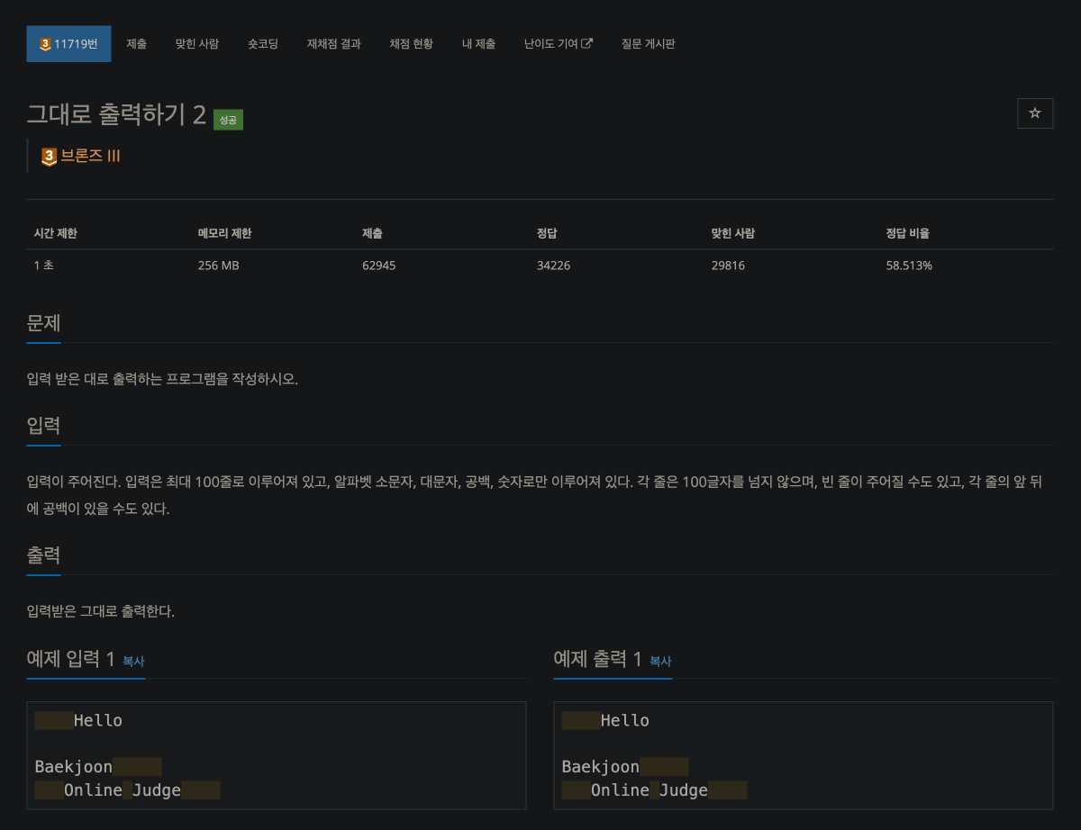입력이 주어진다. 입력은 최대 100줄로 이루어져 있고, 알파벳 소문자, 대문자, 공백, 숫자로만 이루어져 있다. 각 줄은 100글자를 넘지 않으며, 빈 줄이 주어질 수도 있고, 각 줄의 앞 뒤에 공백이