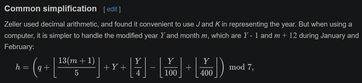 https://en.wikipedia.org/wiki/Zeller%27s_congruence#Common_simplification