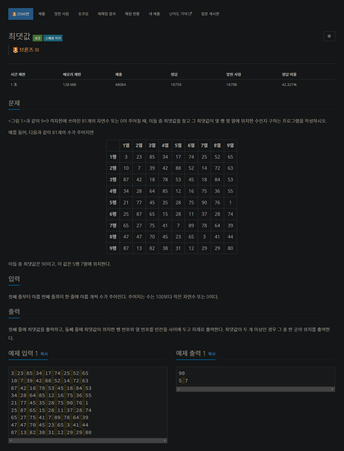 2566번: 최댓값