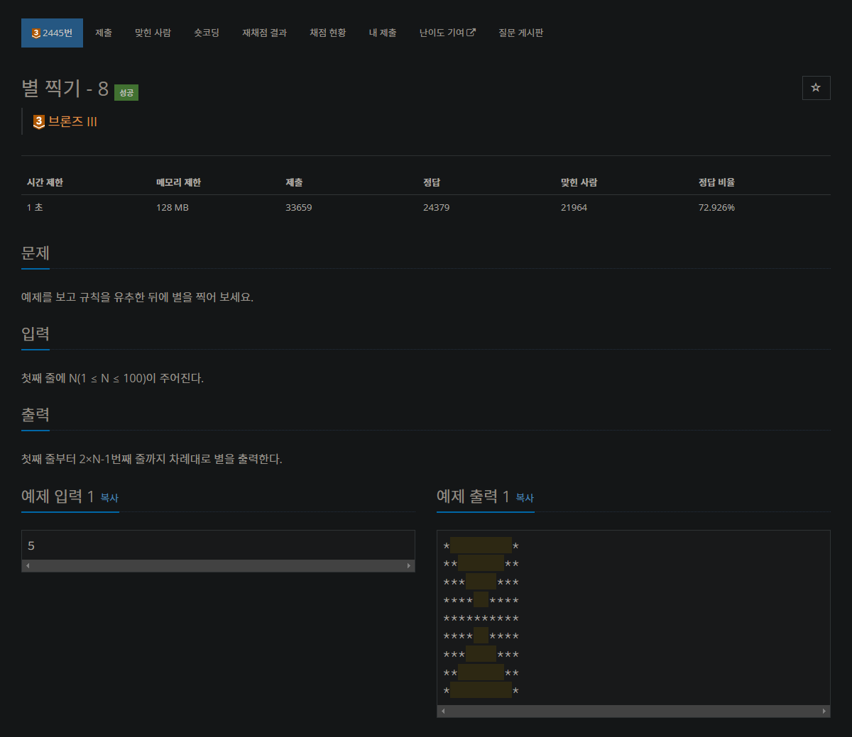| [Java] 백준 풀기 2446 - 별 찍기 9 (0) | 2023.07.07 |