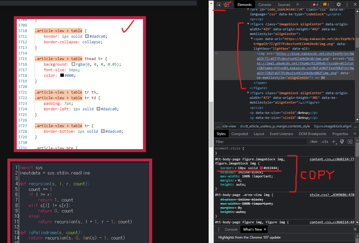 제일 위에 해당하는 #tt-body-page figure.... 의 속성 항목에 border: 10px solid #b92444; 를 추가해보면, (색상은 상관없음)