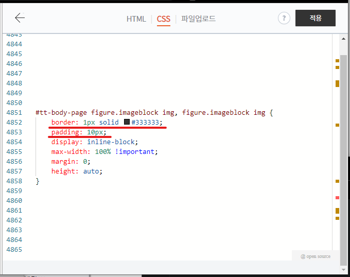 티스토리 html 편집기를 열고 css 맨 밑에 붙여 넣는다.