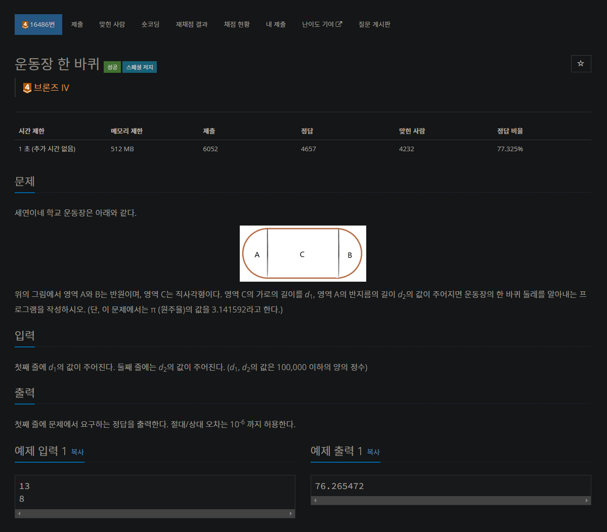 16486번: 운동장 한 바퀴