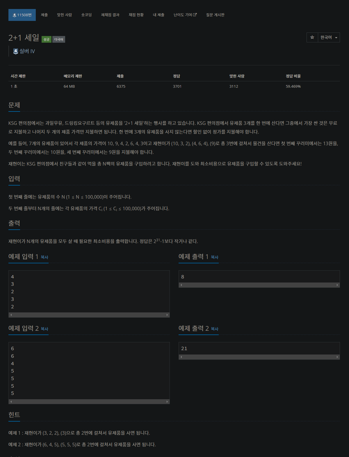 11508번: 2+1 세일