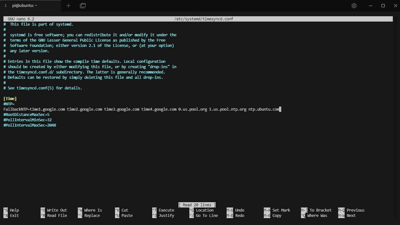 sudo nano /etc/systemd/timesyncd.conf