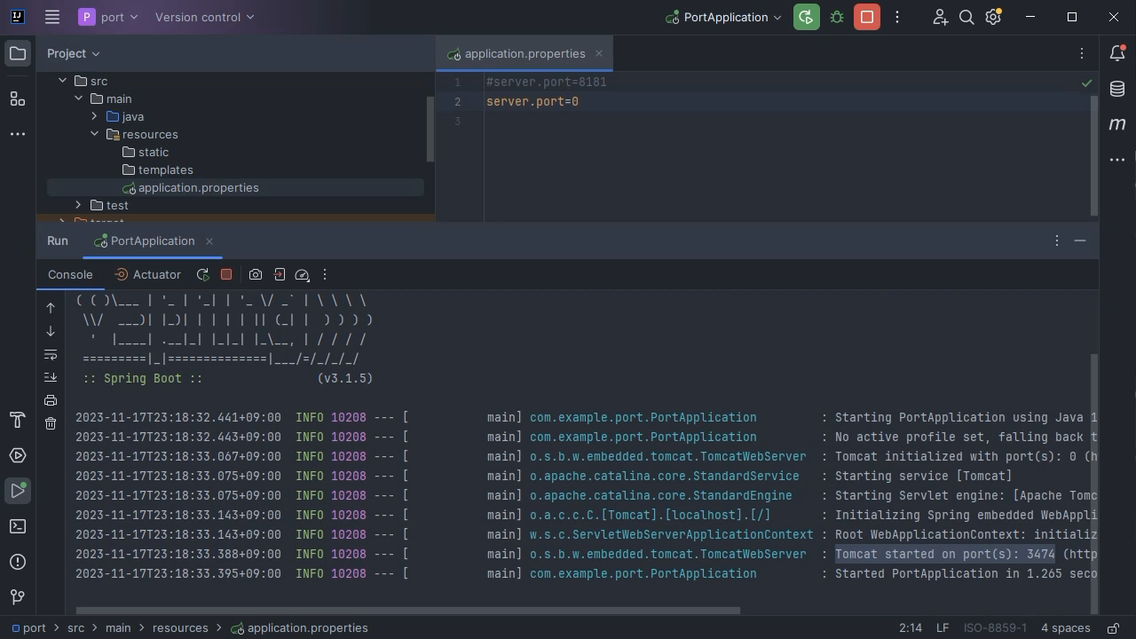 application.properties 에 server.port를 0으로 지정하여 랜덤 포트 넘버를 부여