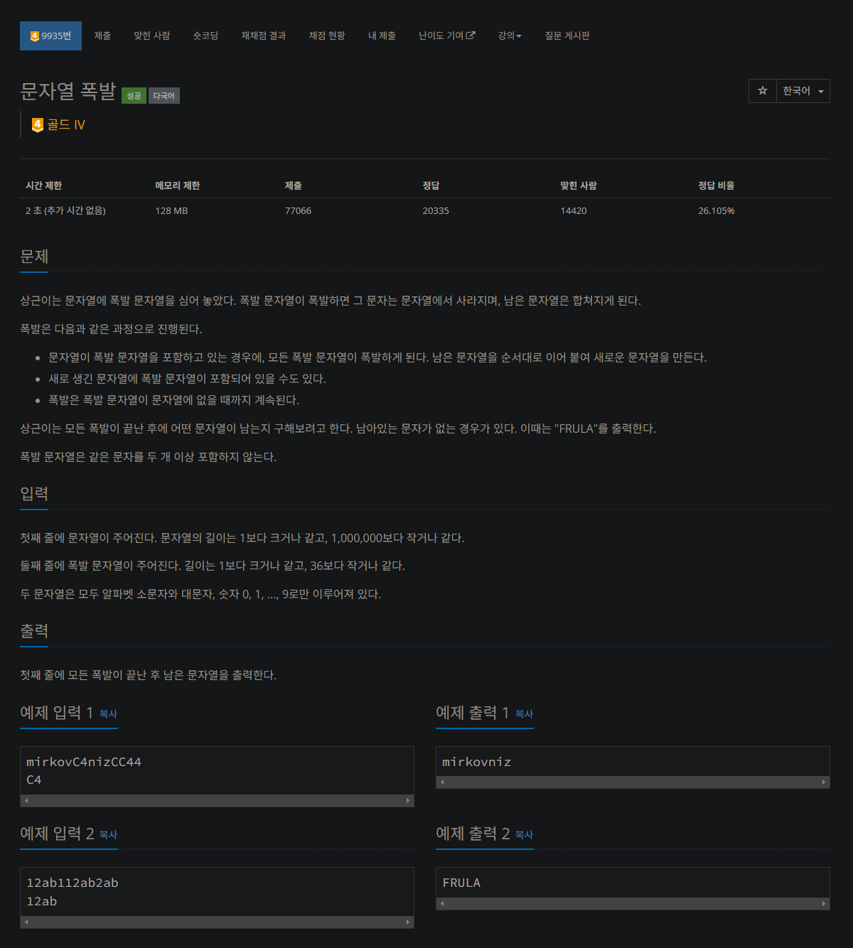// 폭발 문자열이 있는 경우 해당 문자열 제거