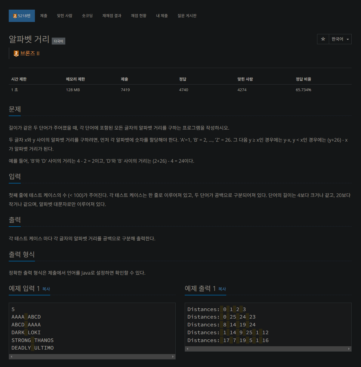 자바 백준 5218번
