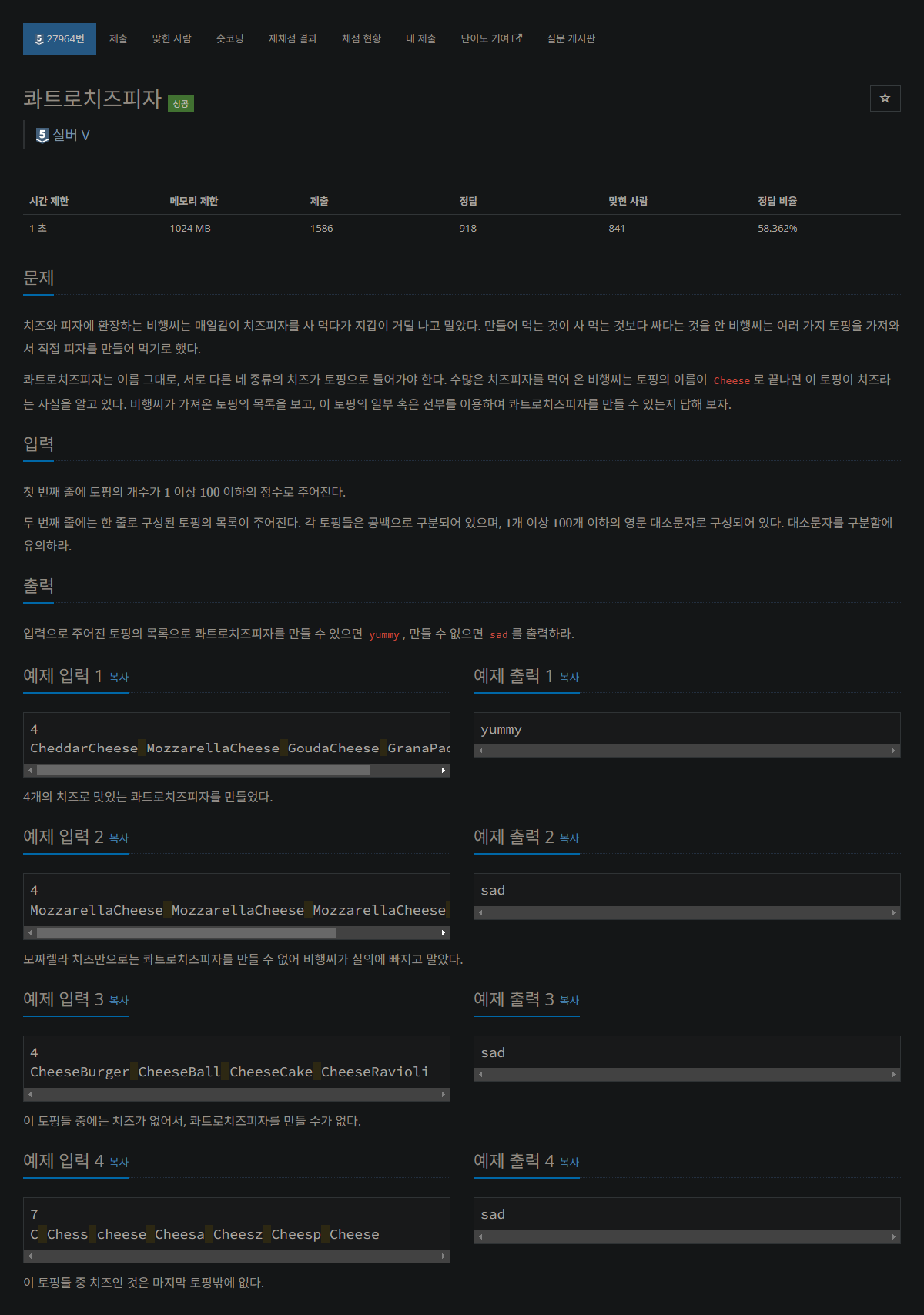 // 콰트로치즈피자 만들기 가능 여부 확인 및 출력