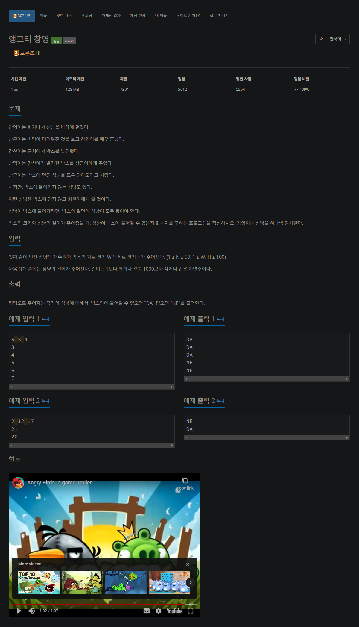 // 성냥이 박스에 들어갈 수 있는지 여부 출력