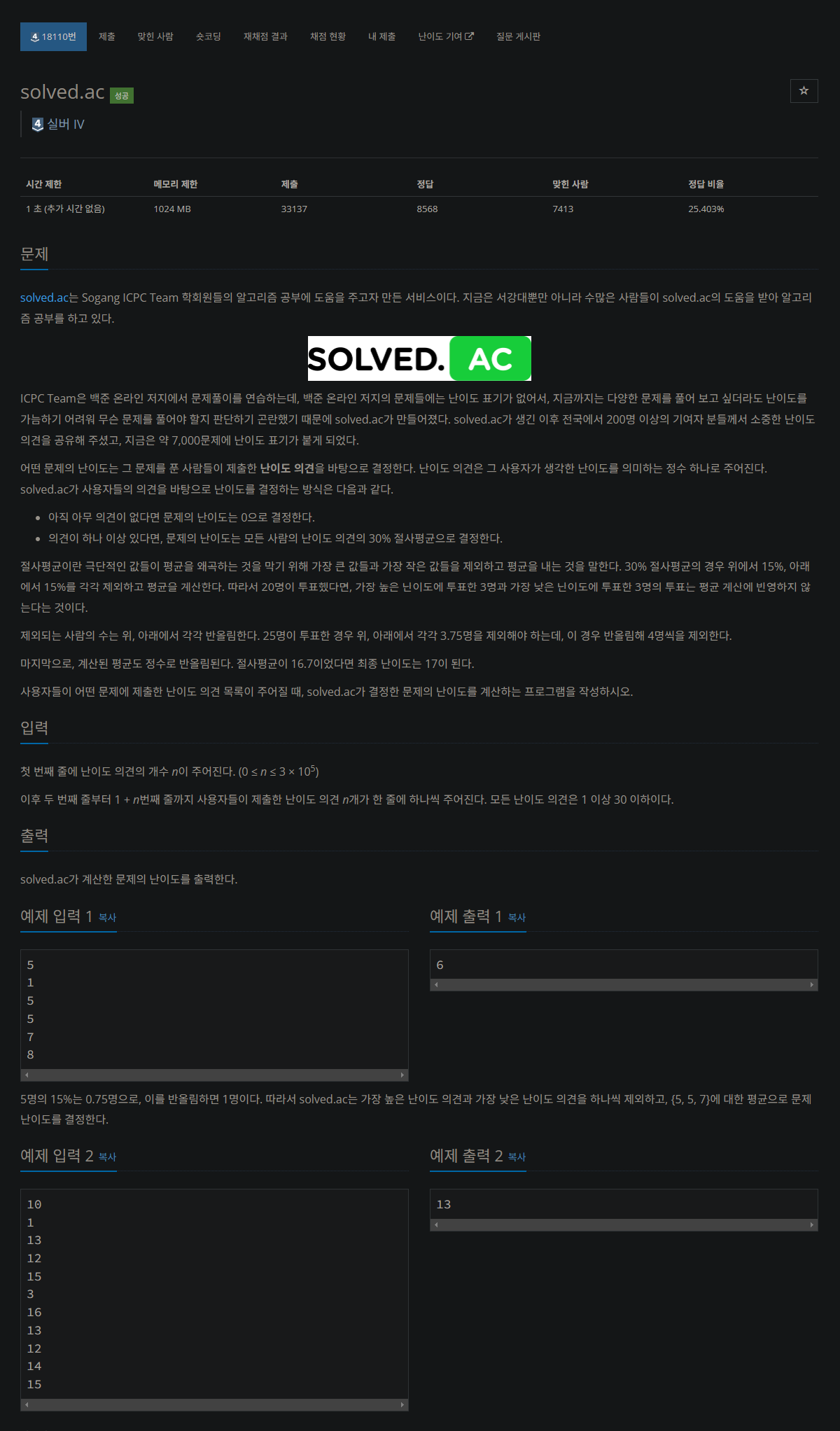 // 문제의 난이도를 결정할 의견의 개수를 입력