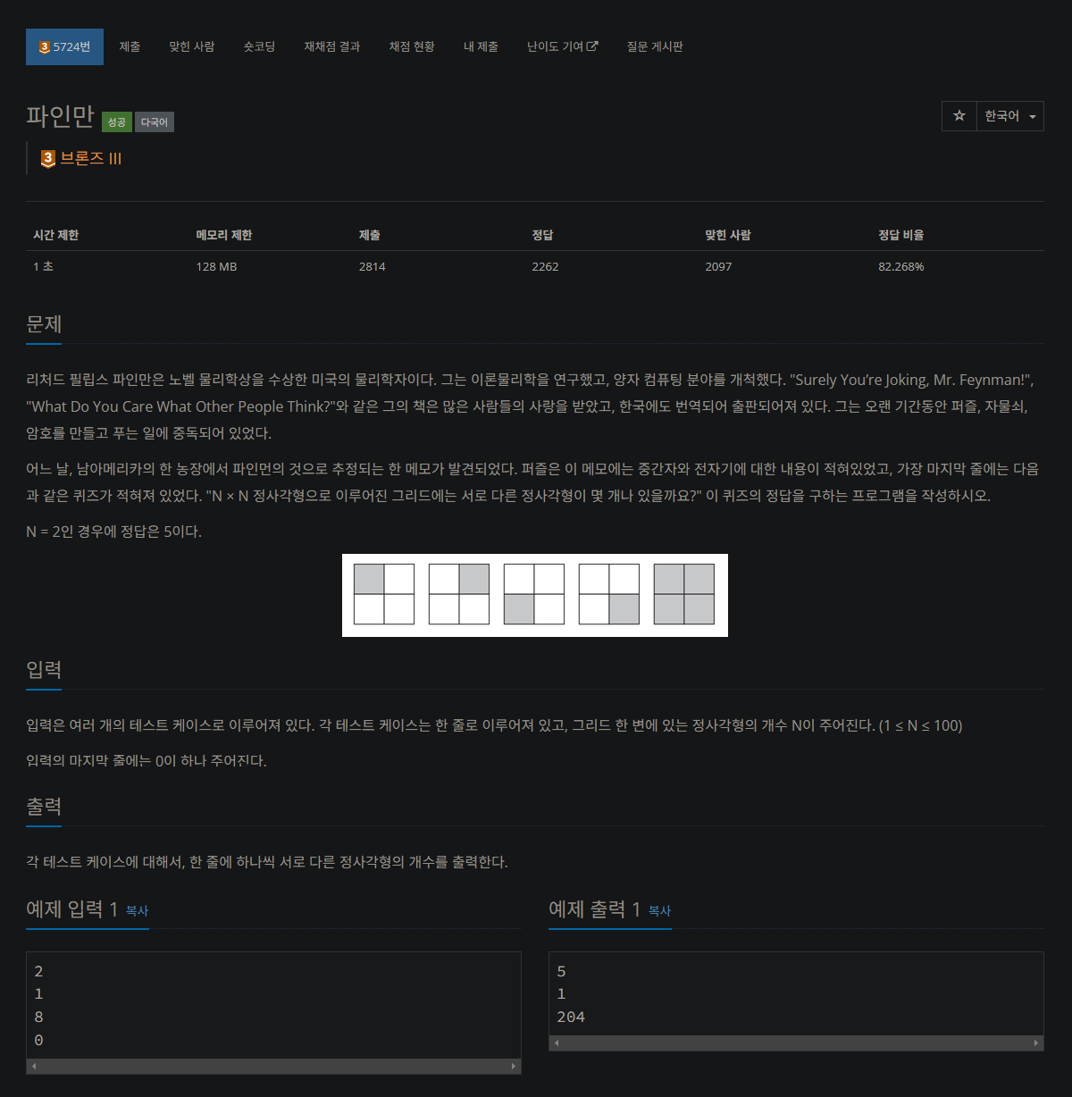 // 1부터 N까지의 각 정사각형 크기에 대해 반복
