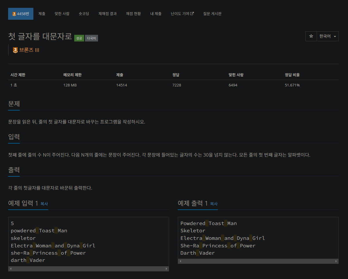 자바 백준 4458번